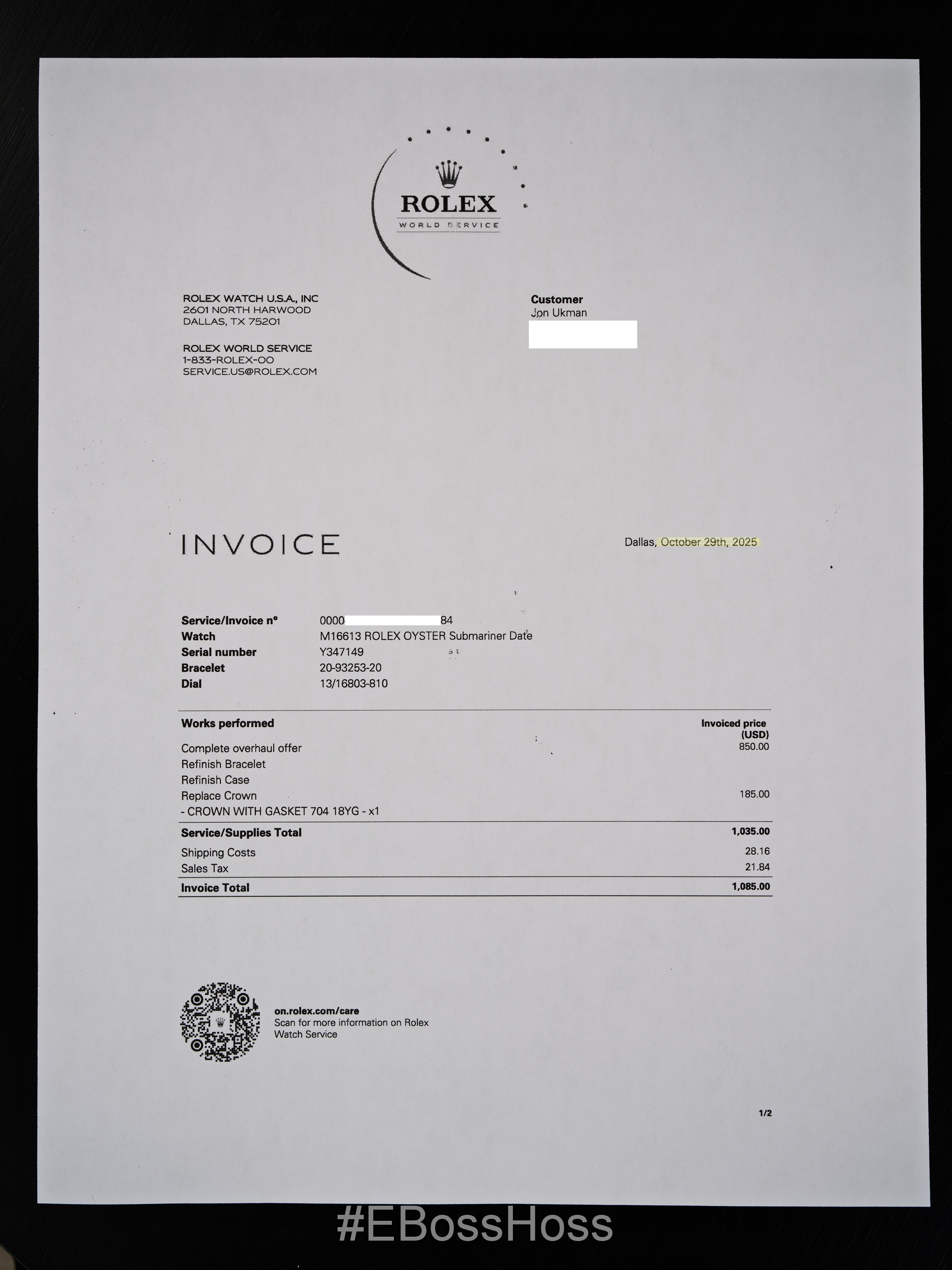 Just back from ROLEX USA after receiving a Full Service, Refurb, Lube, & Polish