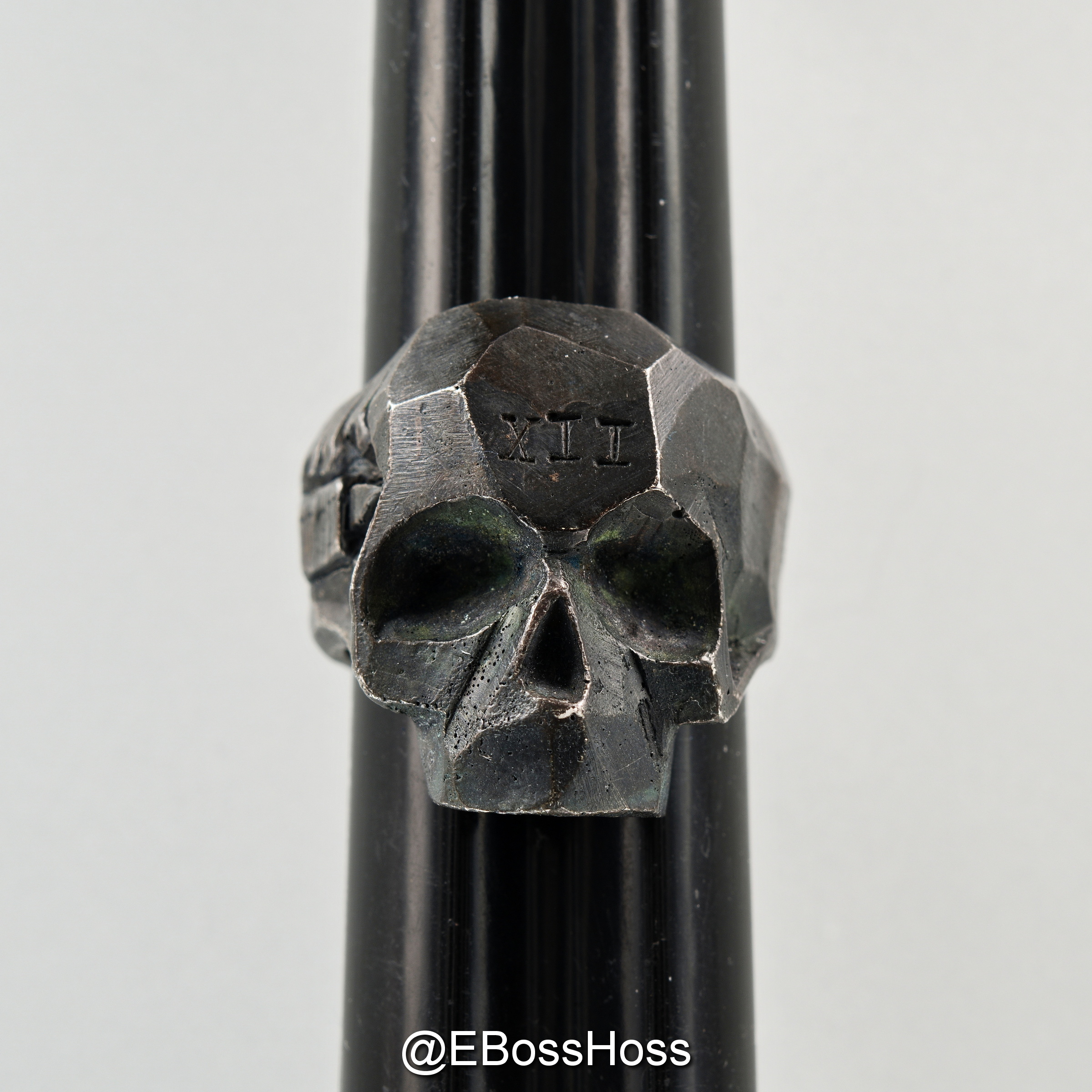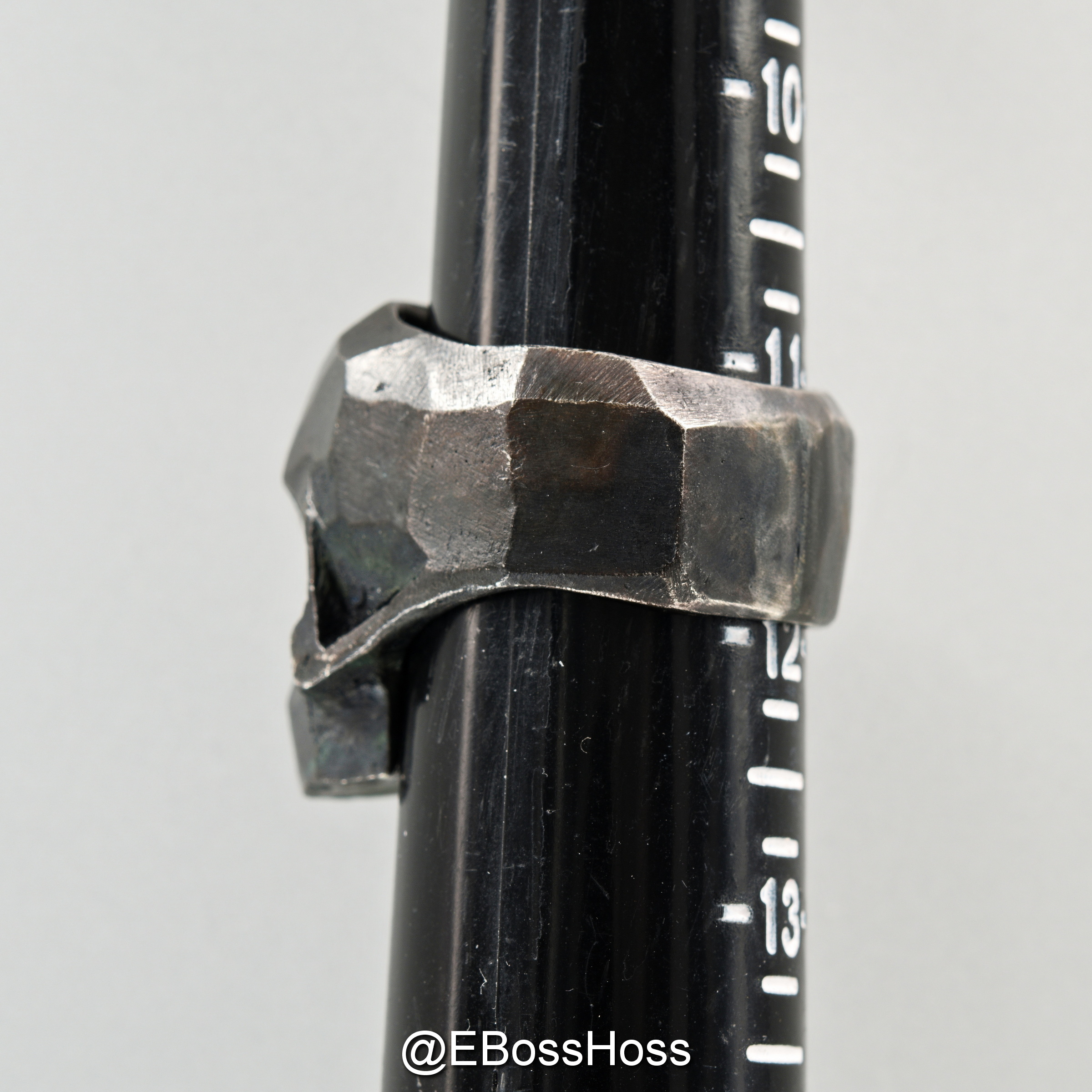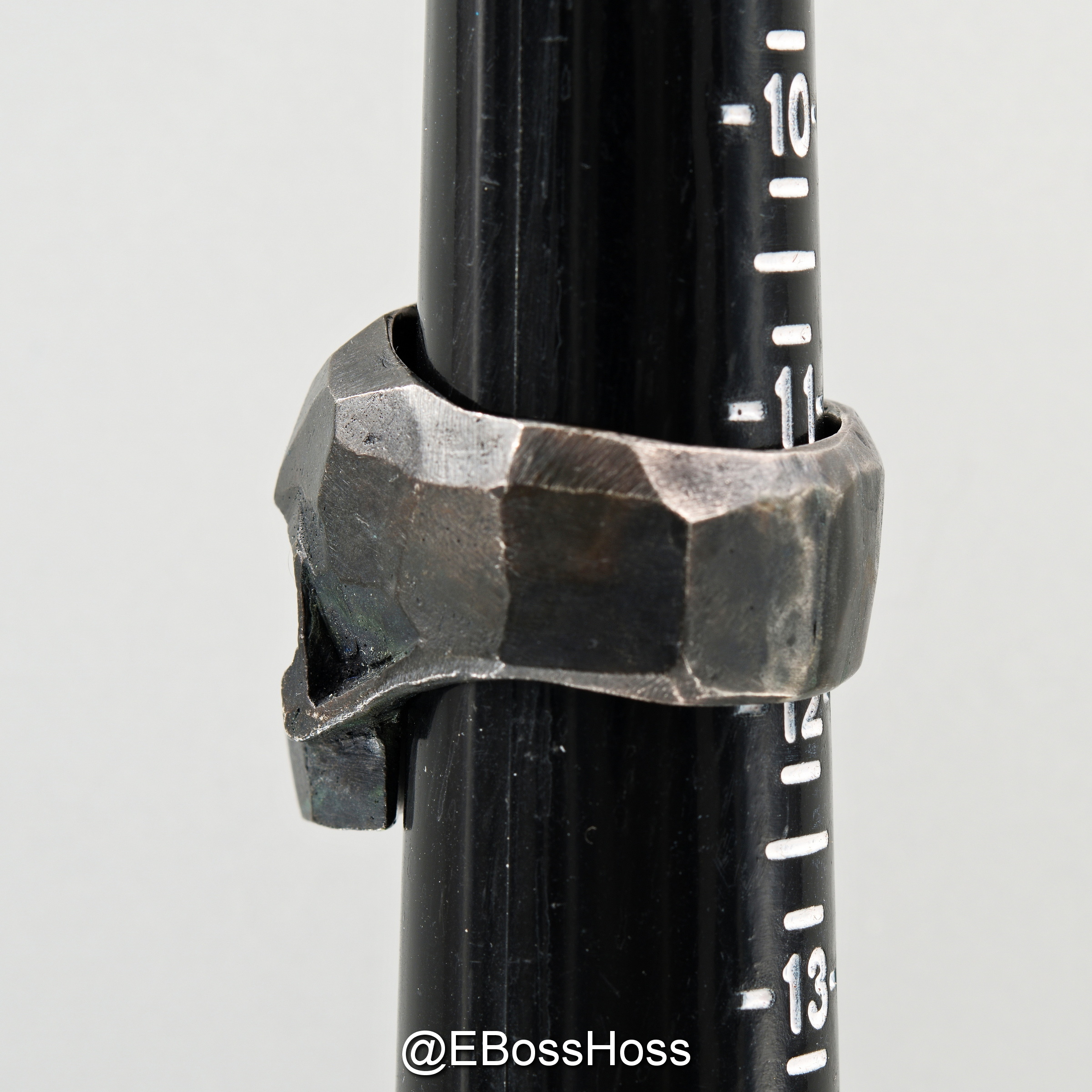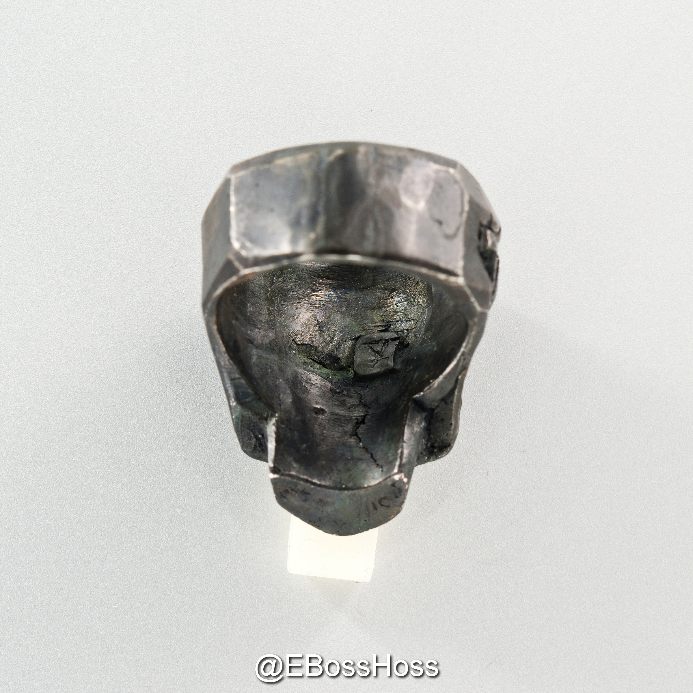 A study in textures, the maker says the design was inspired by rocks and their natural textures. It was hand sculpted and chiseled to bring out the natural textures, then recrafted so the cuts and facets would be unique to this piece.